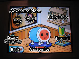 If you imported Taiko no Tatsujin DS 7-tsu no Shima no Daibouken (aka Taiko no Tatsujin DS 2 by many) and are puzzled by the Japanese menus please thank Luke. He kindly made and sent screenshots with rough translations for the navigation (thanks!!). Now you won’t have to stumble around looking for the dojo or accidentally jump into hard mode when exploring the seven islands adventure.