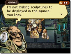 Takayashiki felt that Radiant Historia would benefit from Atlus’ experience developing role-playing games. Once the pitch was improved, sure enough, Atlus, as the game’s publisher, requested certain changes be made to the concept design. The first was a radical change to the game’s protagonist.
