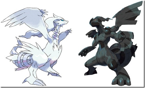 Pokémon Black/White take this concept further than version-exclusive monsters. The Black version has an exclusive area called Black City, while White contains White Forest. The cover art for both games, however, focuses on the two version-exclusive legendary Pokémon, Reshiram (in Black) and Zekrom (in White).