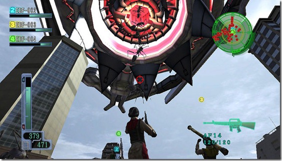 The goal of the Earth Defense Force is to defeat the ants and send the Ravagers packing. Players start out as Storm 1, a generic male soldier, but eventually get the option to play as Pale Wing, a female soldier with a jet pack, after beating the game. This is accomplished with oodles of weapons. Earth’s salvation is divided up into bite-sized missions that typically take five to ten minutes to beat. Players pick two weapons for Storm 1, head into a mission and shoot down lots of ants at whichever of five difficulty levels they want. The ants aren’t particularly smart, which is fine because there are usually so many that they don’t have to be. If 15 giant ants that are 3x the size of your character have you surrounded, then that’s challenging enough.