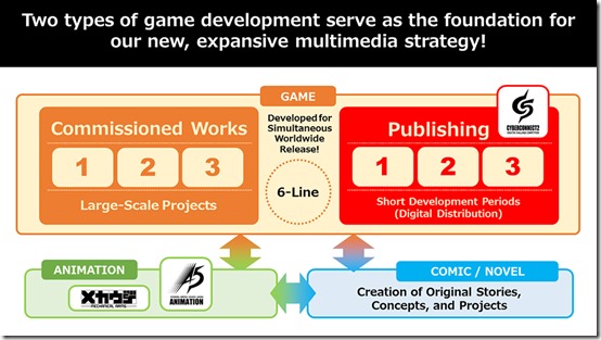 - CyberConnect2’s new strategy stems from a shift from a ‘game based’ to an ‘IP based’ company. In this day and age, it is hard for a single game to change the entire game industry, and trends have shifted towards people buying things based on known IPs. Entertainment needs to be IP-based, including things such as multimedia efforts, rather than simply game-based.