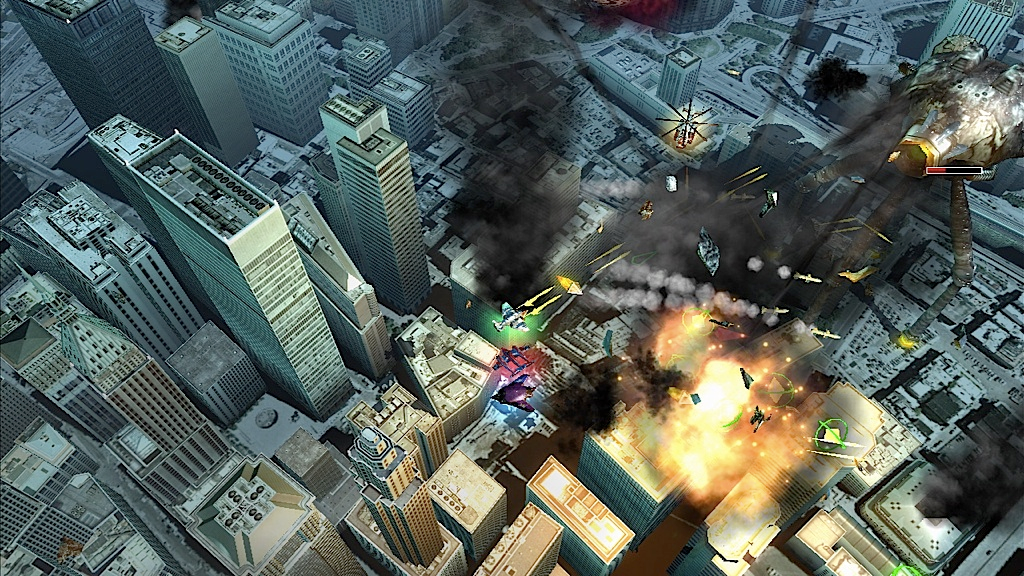 In 0 Day Attack on Earth players defend Tokyo, Paris, and New York from an onslaught of giant aliens. The game uses actual city maps so you’ll fly above sights like Tokyo Tower and the Statue of Liberty. The game has four player co-op over Xbox Live, an eight player versus mode, and customizable aircraft to play with.
