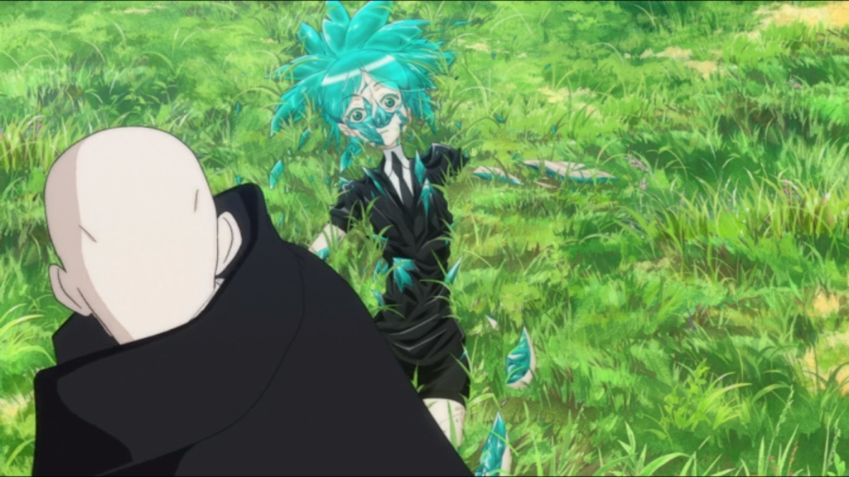 In an alternate reality, mysterious creatures called Gems inhabit a desolate world destroyed by meteors some time prior. Each Gem is assigned a specific role catering to their individual talents in order to fight against the Lunarians, a species who seeks to shatter their bodies and use them as decorations. Phosphophyllite is a young and inexperienced Gem who aspires to join the war, but due to their fragile state, they are instead instructed to compile an encyclopedia. Phos begrudgingly sets out to do so, meeting Cinnabar, another rejected Gem, along the way. Due to the corrosive poison Cinnabar’s body excretes, they are confined to the lonely existence of patrolling the island at night. Phos seeks to find suitable and valuable roles for them both.