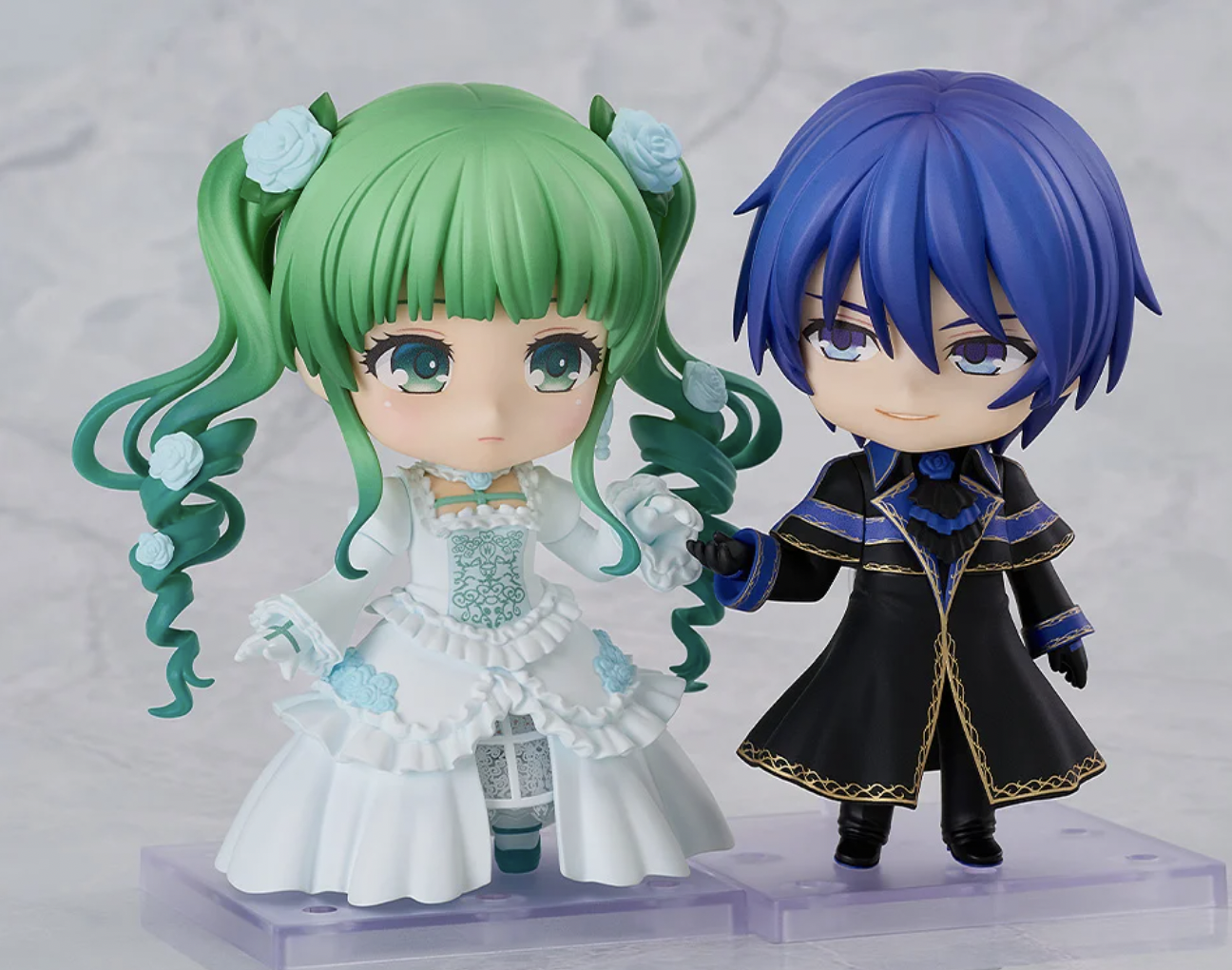 The “Cantarella” Miku and Kaito figures are both based on their appearances during the song of the same name. Each one comes with three face plates and accessories like masks. The Miku also comes with a white rose if you order direct through Good Smile Company. She costs ¥8,000/$50.99, while he costs ¥7,500/$47.99.