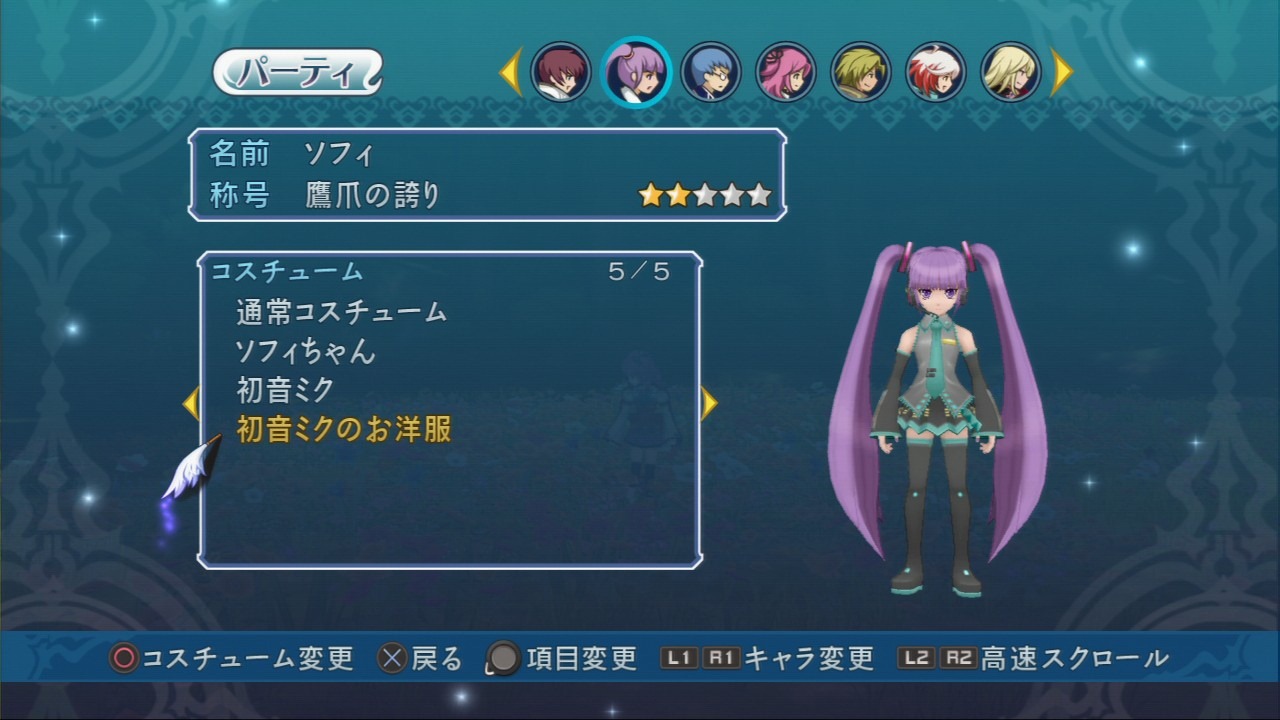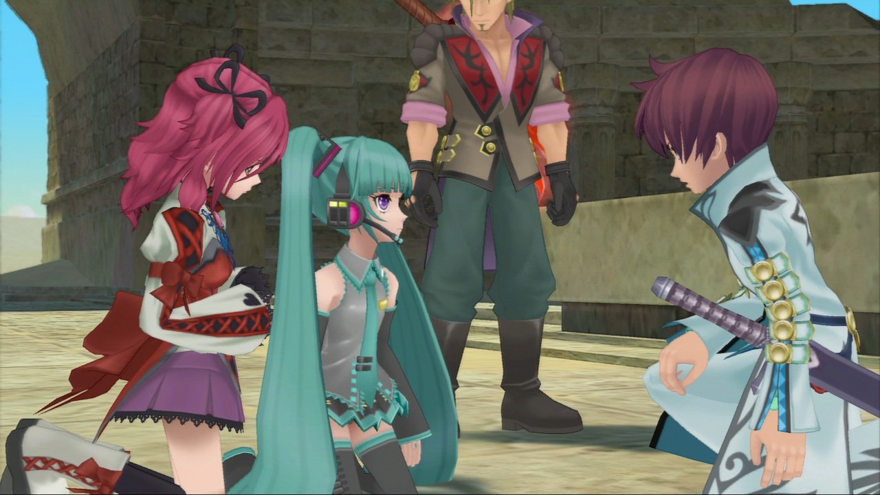 Sophie’s Hatsune Miku outfit is in Tales of Graces F too. Finally, you can explore Efinea with a virtual idol, Sony mascot, and two Geass knights.