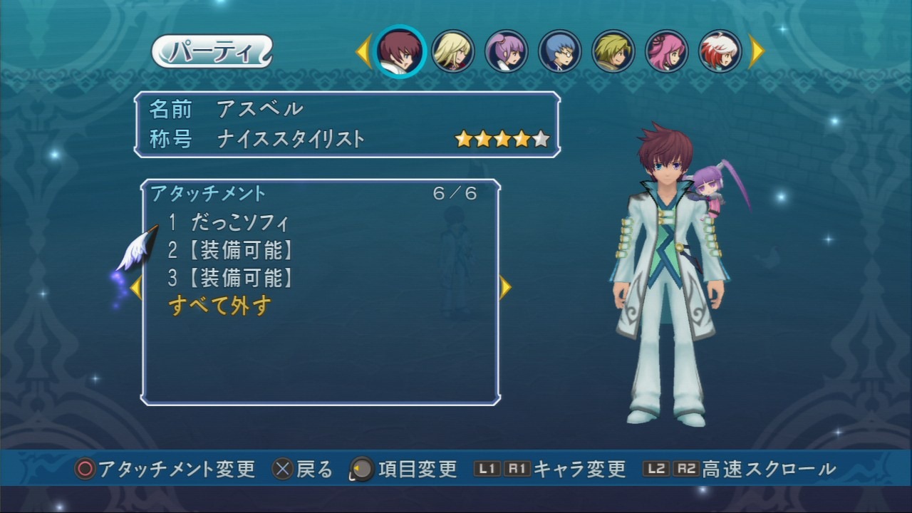 Just in case four Sophies weren’t enough, Tales of Graces F has a hugging baby Sophie you can purchase as an attachment item. (See this for more information about the attachment system.) So, you can have four Sophies each carrying a baby Sophie… never mind.