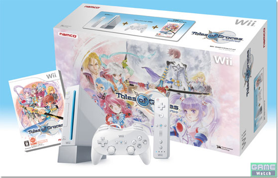 Thanks to Impress Watch, we finally get a good look at the Tales of Graces Special Pack, which includes the game, a white Wii and a white Classic Controller Pro for 27,800 yen. The special pack goes on sale December 10 and will be released in limited quantities, although, no one has cited any numbers yet.