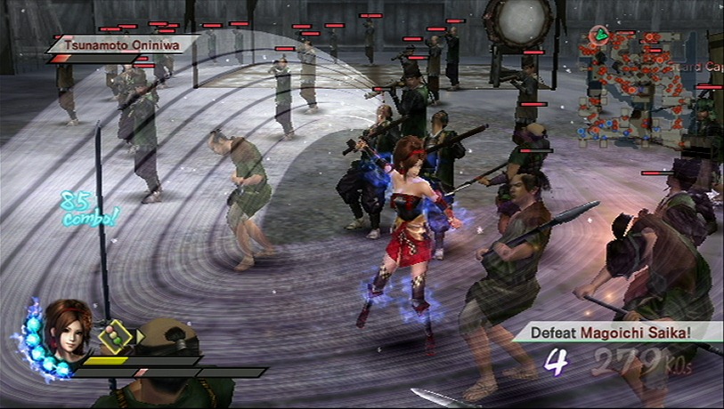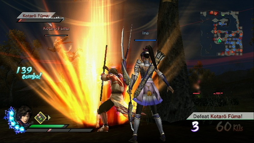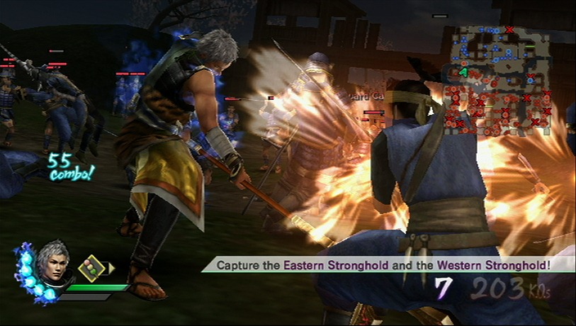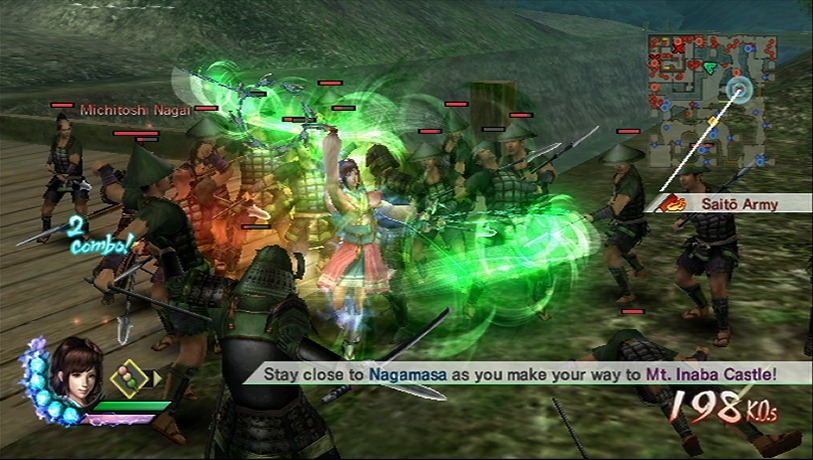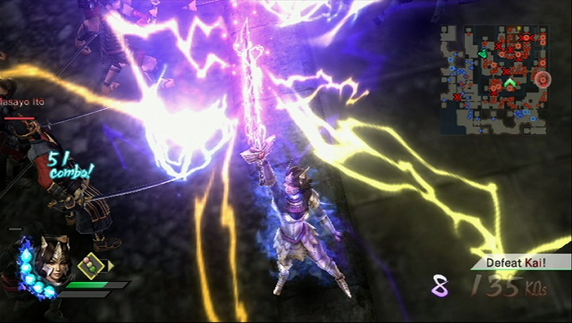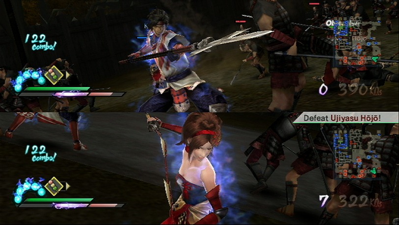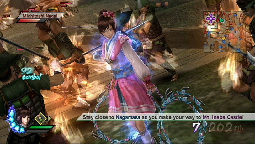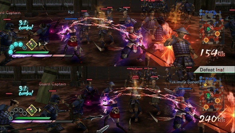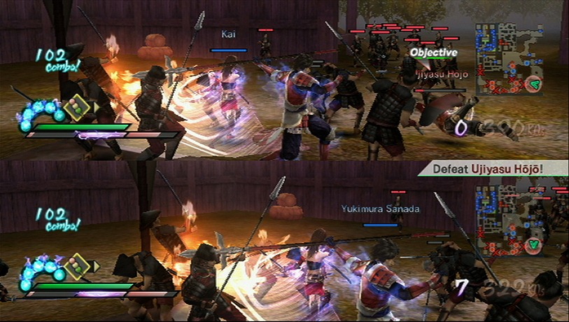 Play with both of characters at the same time, offline with a split screen or online. That’s right Samurai Warriors 3 supports online play for the Mysterious Murasame Castle mode, a feature based on a Japan-only Famicom game developed by Nintendo. Samurai Warriors 3 also has a historical mode, which explains the significance of the Warring States battles while your custom hero cuts through an army while riding a bear.