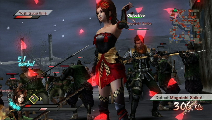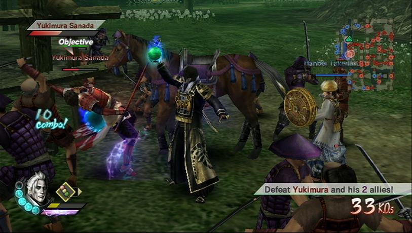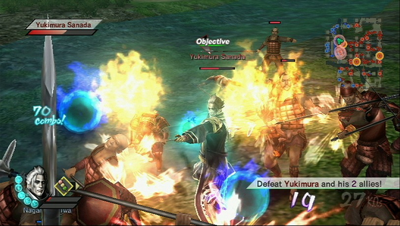 Samurai Warriors 3 has mobs of enemy troops to slice through. Nintendo, keeping with the theme, sent out a mob of screenshots with Yukimura and Kai cutting them down.