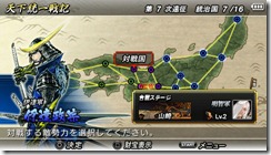 Capcom’s portable Sengoku Basara game has a blend of characters from the Sengoku Basara series. Slice up enemies as ninja Fuma Kotoro or pound them with a giant hammer as Itsuki. Before we get to those characters we’ll start this batch of screenshots with Akechi Mitsuhide and his dual scythes.