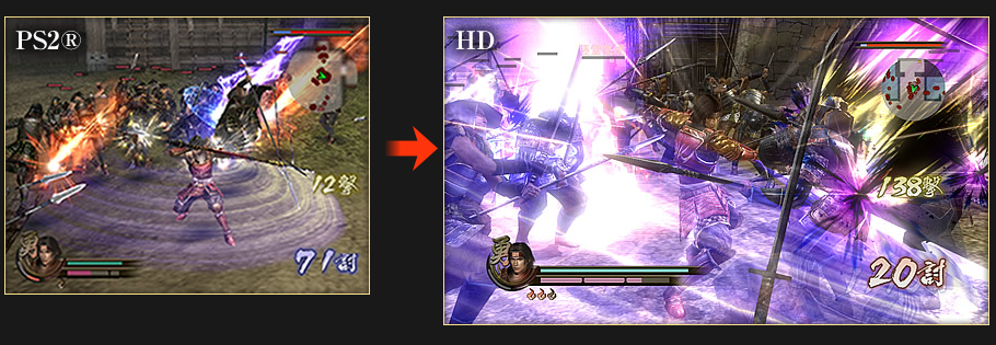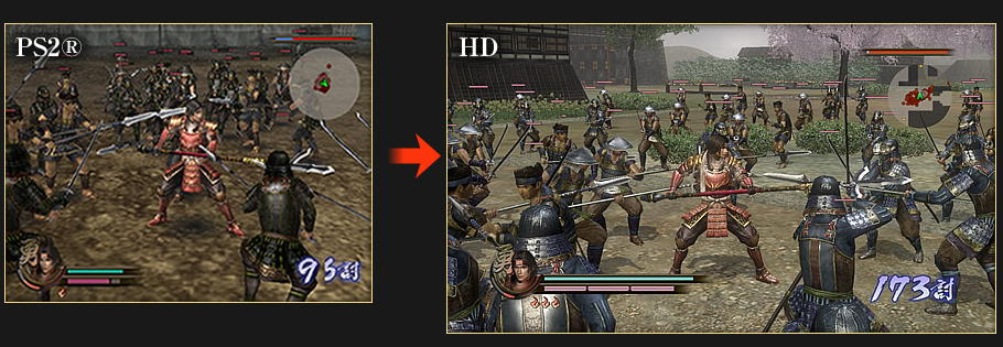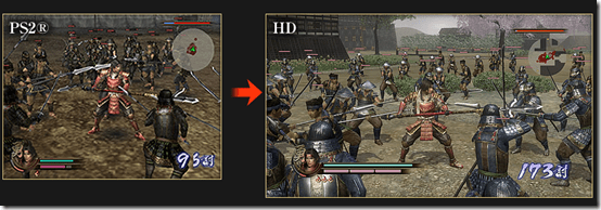 The biggest change is the visuals. Samurai Warriors 2 HD can output significantly more troops on screen, says Tecmo Koei. Here are some comparison screenshots.