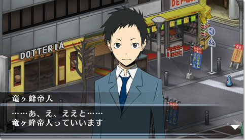 Durarara: 3way Standoff features a new character named Yoshimune Miyoshi, a freshman at the school Mikado, Kida and Anri attend. Miyoshi — nicknamed “Yoshi Yoshi” — is the character you’ll be playing as, and is described as being a good listener with a bright personality. You’ll get to go to different places in Ikebukuro to talk to the various Durarara!! characters, and maybe even get well-acquainted with some of the them.