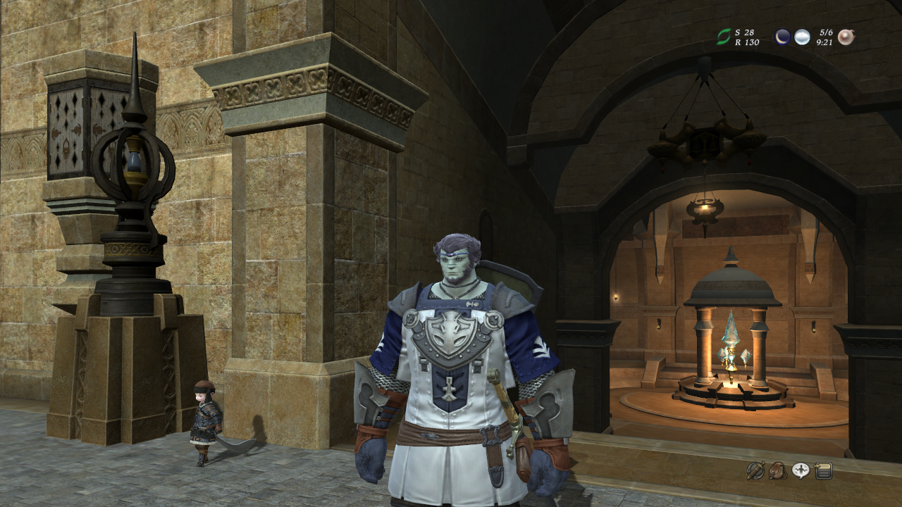 Ul’dah begins with a party. My character, a Miqo’te armed with an axe, entered the desert town on a Chocobo driven caravan. The town was bustling with all races and a few characters that looked like the puppetmaster puppets from Final Fantasy XI. A smooth talking character named Thancred took the spotlight until they brought out a monster in magical handcuffs. The crowd cheered until the Gobbue broke free and terrorized the town.