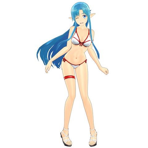 First, is a major DLC called “Castaway from a Different World.” It’s about Sugou Nobuyuki, also known as Fairy King Oberon, appearing in the world and you’ll need to team up with Accel World and Sword Art Online characters to take on this powerful boss. You can also recruit him by meeting certain conditions, if you like having jerks in your party. This DLC will be available as a separate purchase for 2,000 yen for those without the Season Pass. Bandai Namco will share more info on other additional characters that will be revealed on a later date. Those will be available for 500 yen each. There will also be “Knights of the Blood” costumes to bring back some memories of Aincrad. Speaking of costumes, here’s a look at the Youth Swimsuit Costumes “Etoile” for Asuna, Sinon, and Leafa: