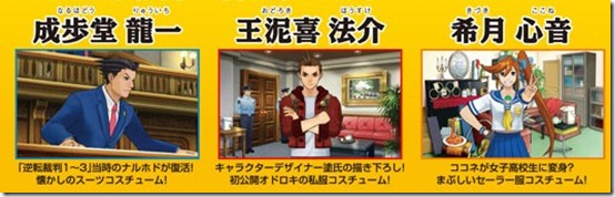 Here’s a quick look at the three pre-order bonus DLC costumes we recently reported. Phoenix Wright is seen in his original suit from the first three Ace Attorney games. Apollo is shown sporting a casual outfit while Kokone has a younger look with her schoolgirl outfit. Capcom have also updated their Ace Attorney 5 website with some new info regarding the prosecutor accused of murder, Jin Yugami.