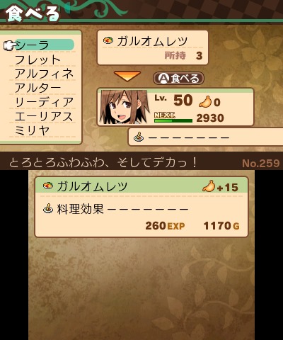 imageRideOn Japan is bringing their hit tavern simulation meets RPG, Adventure Bar Story, to Nintendo 3DS.   In this game, you play as the owner of Kamerina’s Bar and your tavern is under threat from Gustav, a ruthless businessman who will stop at nothing to buy out your bar. Your solution is to cook up fine cuisine and become the most popular bar in town. You’ll need exotic ingredients, which you earn by defeating monsters.   Adventure Bar Story has over 400 recipes and unlike other RPGs your party members only level up when they eat food. The Nintendo 3DS version is slated for release in Japan on June 25. Since Adventure Bar Story has been localized, perhaps there’s a chance we’ll see the 3DS version released overseas too.