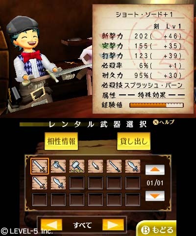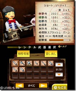 As previously reported, Weapon Rental Shop de Omasse is being developed by comedian Yoshiyuki Hirai. You play as a boy named Yuhan, who serves as an apprentice under his master at a weapons store that is actually located in a fictional role-playing game named Wiko II.
