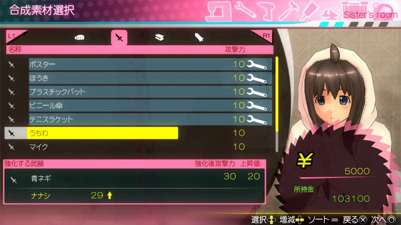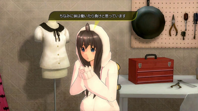 You can create better weapons and clothes to fight the vampire-like creatures in Akiba’s Trip 2 by turning materials into usable items. Nana, your little sister in the game, helps you do this since she runs the synthesis shop. Nana likes sewing and has a vivid imagination, but is intimidated by guys. She has a room decorated with stuffed animals and anime posters in the Akihabara Vigilante base.