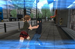 Akiba’s Trip for GREE has players patrol the streets of Akihabara looking for vampire-like creatures to… umm… expose. See, the Kageyashi are vulnerable to sunlight so stripping them is the only way to defeat them.