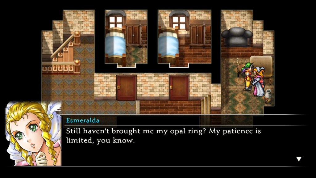 | Esmerelda | Chikau | Speak to Esmerelda on the top floor of the inn in Antei while holding Opal. |