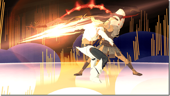 One of the goals of the team was to break down some of the barriers in character action games. They felt a lot of these games have too many button inputs and too much memorization. This game uses three buttons: one attack button, one jump button, and one defend button. The way combat works is with more rhythmic button presses. Also how long you hold a button and how hard you press it.