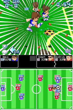 Million: Since it’s a game system where a player controls the team captain and gives orders to each team member while playing soccer, he or she would also be required to lead the entire team. Therefore, good communication with each team member to boost their morale during the team meeting before each match in the locker room is the key to have a great match. This particular system is from a game made for the Nintendo Entertainment System, so although I’m not sure how, exactly, the system of Inazuma Eleven works, if anything is influenced, it’s probably Inazuma Eleven which was influenced by our game system.