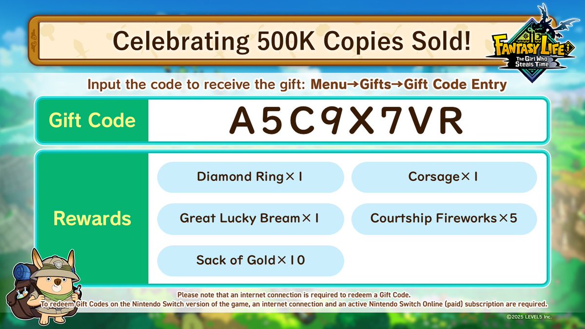 In other news, Fantasy Life i seems to be selling faster than expected! It’s already passed 800,000 copies. That’s why the most recent X95SB4UD code was released. This means if it does hit a million, we’ll likely see Level-5 share another reward code with us.