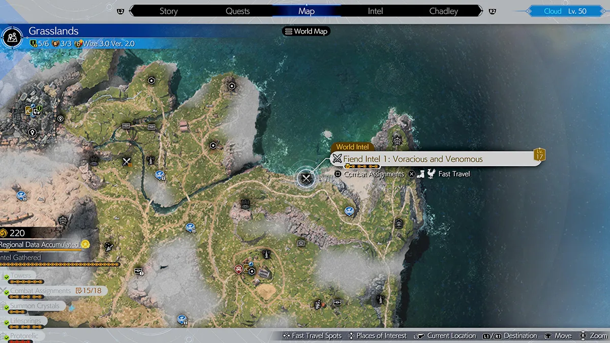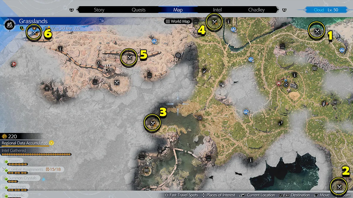 You can find all Grasslands Fiend Intel in FF7 Rebirth on the map below:
