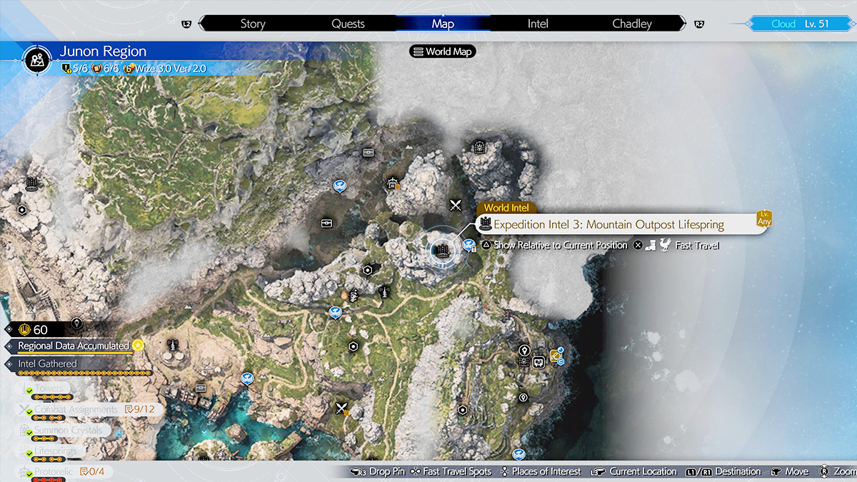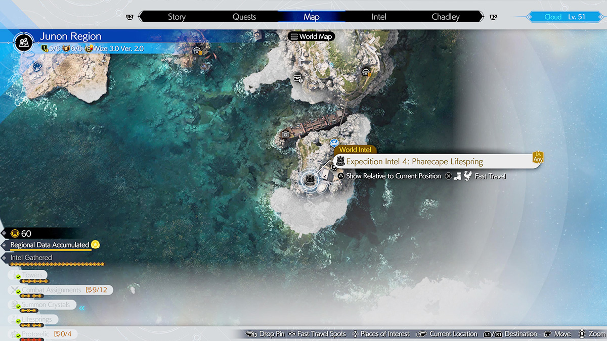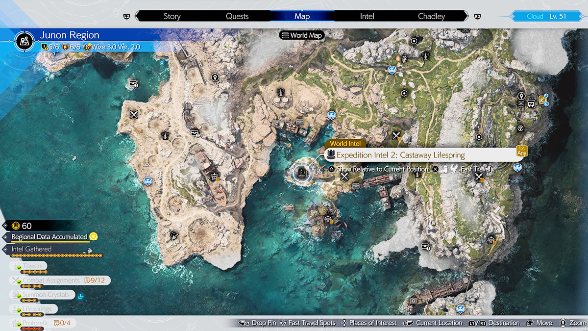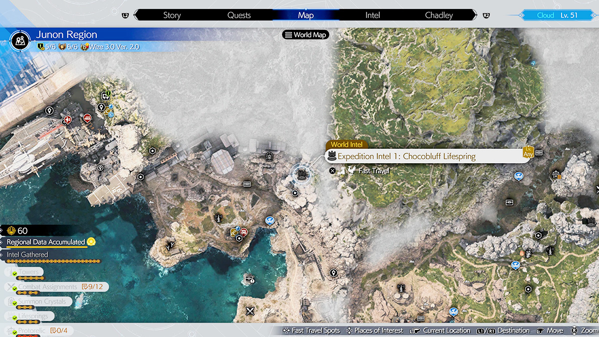 So, while there technically isn’t an order you must complete these in, you will need to do a few things to complete all of them. To get started, we have mapped out Junon and have discovered every location of the region’s Lifespring. For your convenience, you can find all Junon Expedition Intel in Final Fantasy VII Rebirth on the map below: