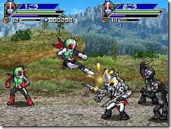 Some can change forms or powers (W, OOO), some can trigger a special effect or attack (Ryuki, 555), and some are passive abilities (Blade, Den-O). All of them have their abilities from the get-go, but they only start with one Special and unlock a few more as they level up. In this regard, you could say All Kamen Rider is like a 2D brawler analogue to Dynasty Warriors with a Kamen Rider coating.