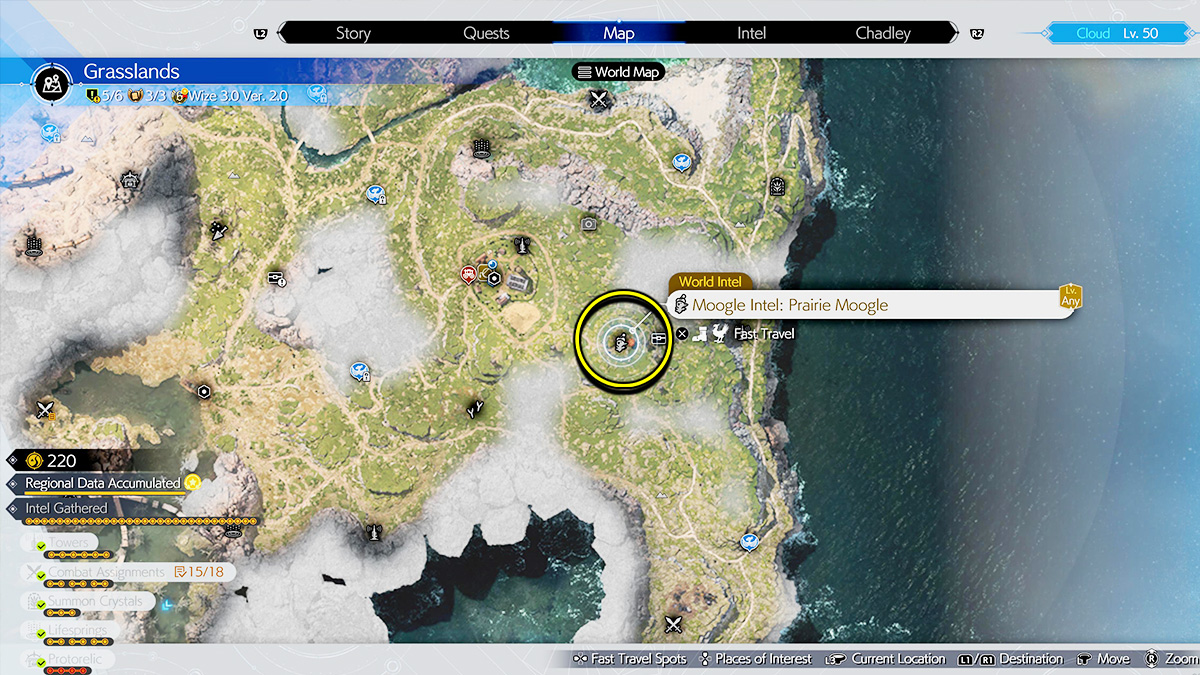 The Moogle Emporium in the Grasslands is fairly easy to find as it’s located just a few feet east of Bill’s Chocobo Ranch. Since you have to visit the area for the main story, you should spot the Moogle location early in the game. You can also complete Chadley’s Remnawave Towers activities, which will add World Intel, such as the Moogle Emporium, to your map.