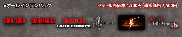 Combination Pack 1 (2,700 yen): Resident Evil: Director’s Cut, Resident Evil 2, Resident Evil 3, and Resident Evil 5: Gold Edition.