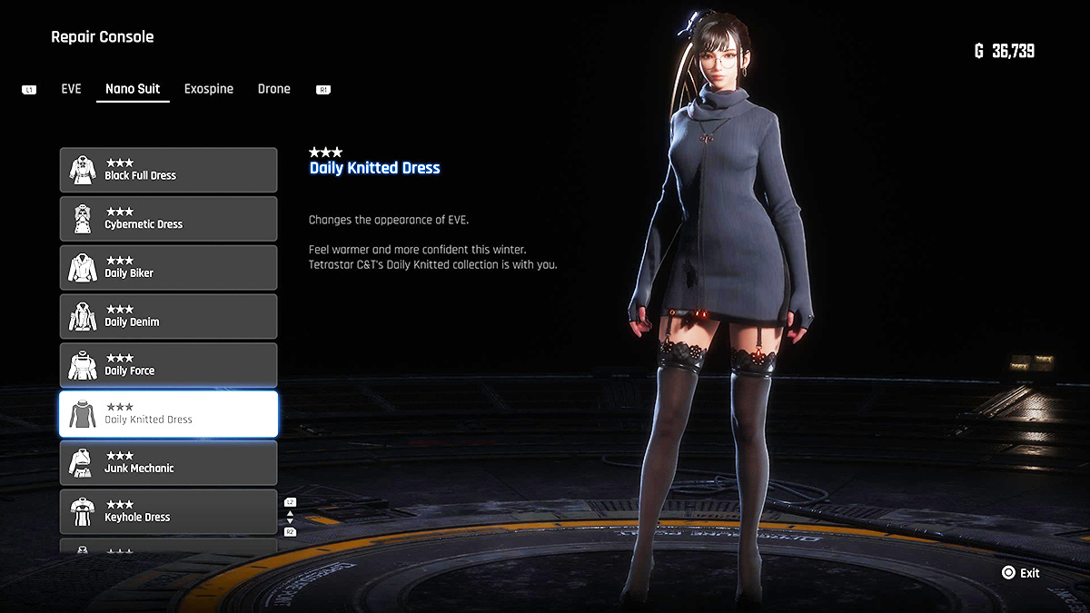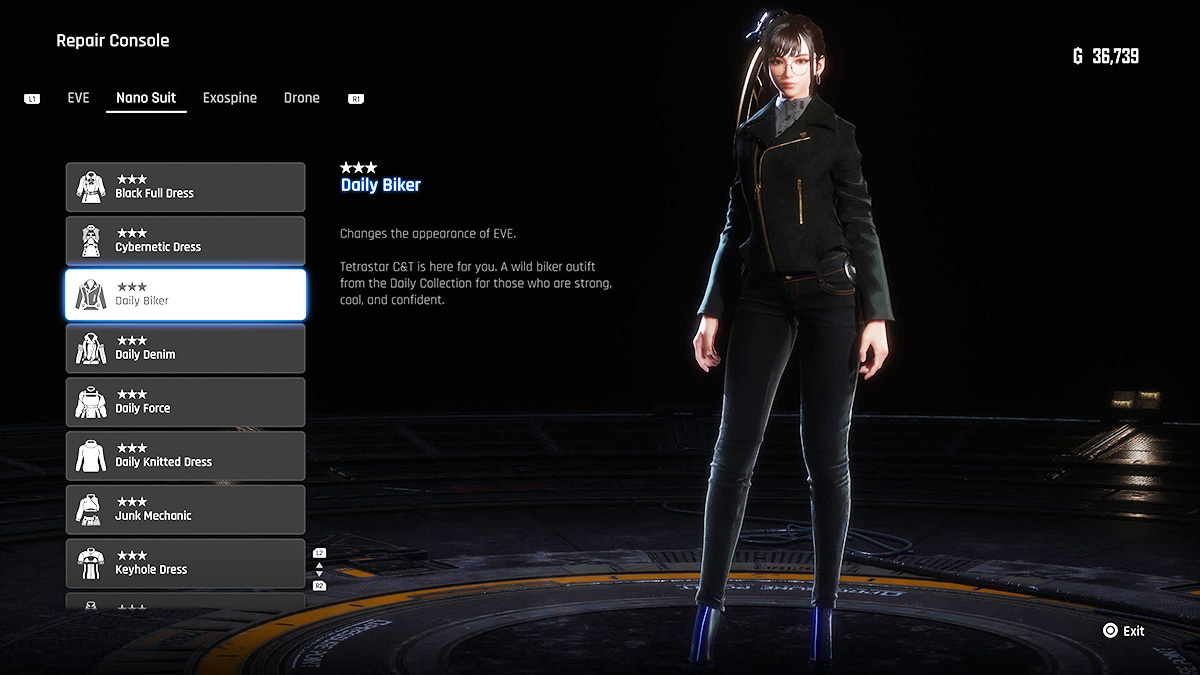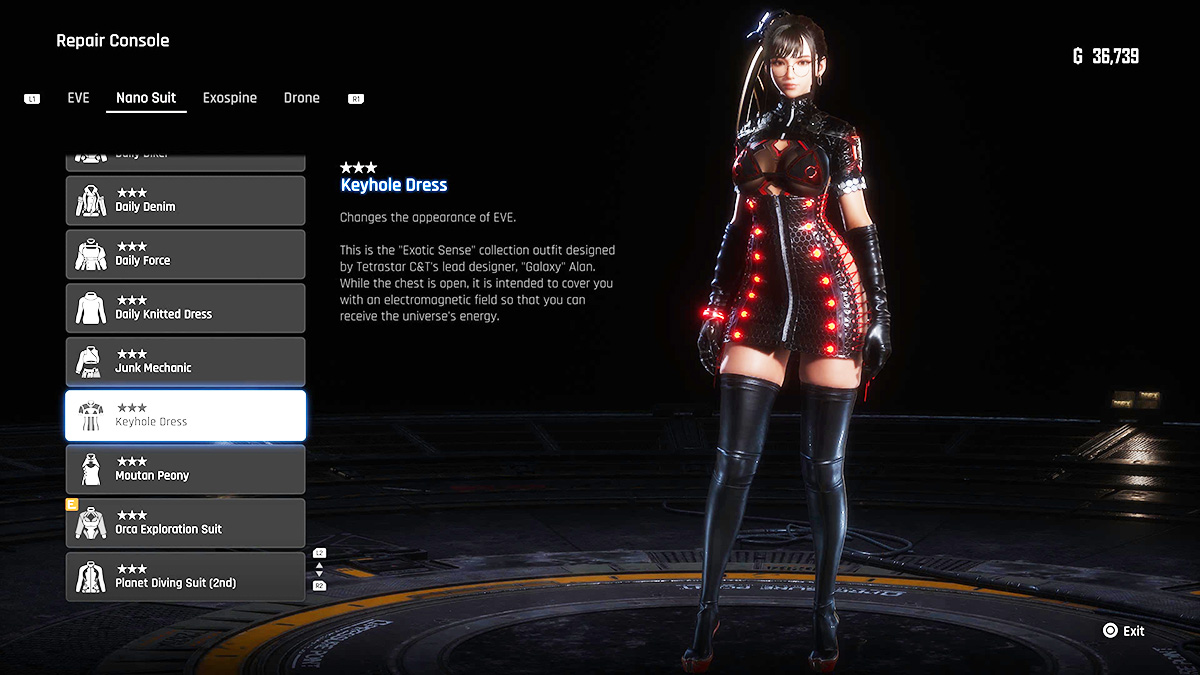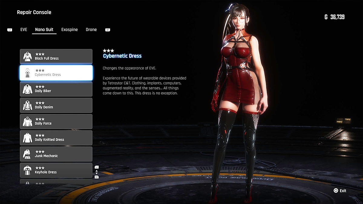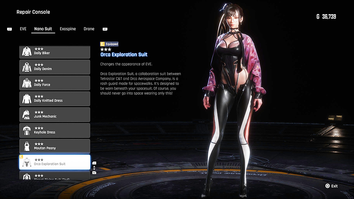Finally, the Planet Diving Suit (2nd) is the last outfit that Roxanne will sell you in Xion. In total, the Info Dealer has five outfits in her store that EVE can equip. This is where the bulk of your Nano Suits will come from in the first half of the game.