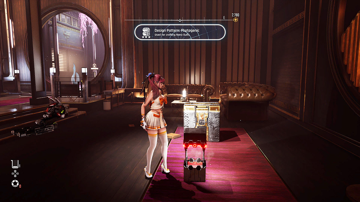 Towards the end of the level, EVE will surf down a red roller coaster. After the sequence ends, you can find a black chest right before you meet up with Lily. Inside the chest is the Design Pattern for the “Motivation” Nano Suit. Just make sure you don’t meet Lily until you find the chest, or you will be locked out of this outfit.