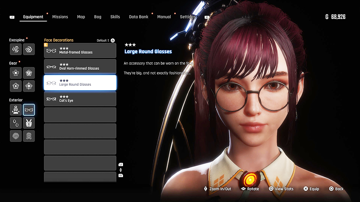 Glasses are unlocked by visiting the D1G-g2r shop in the Wasteland Scrap Yard. After completing Eidos 7 at the beginning of the game, Adam will take EVE to Xion. The main story will then take you to the Wasteland Desert.
