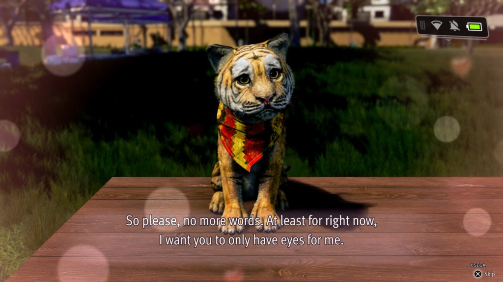 Onigiri the cat will be encountered in District Five as part of the main story. She will also start the sub-story The Kitten in District Five. You can help Onigiri by beating up the gang bullying her, and she will gift you with Humuhumunukunukuapua’a when fed.