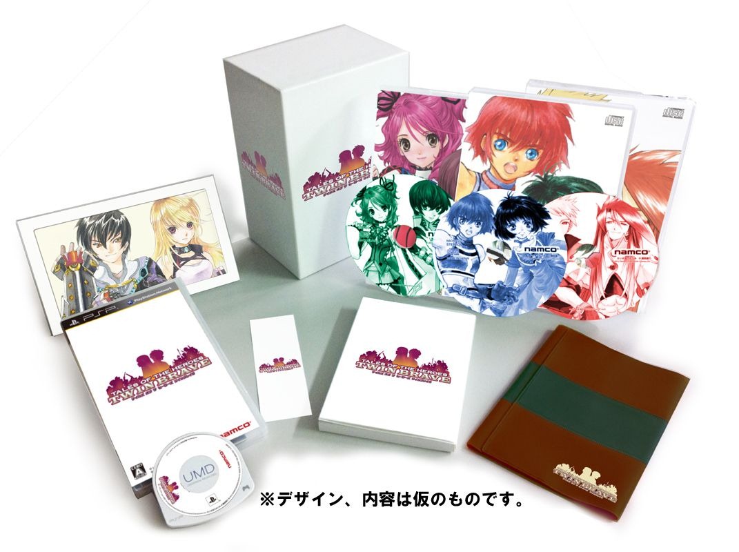 Tales of the Heroes: Twin Brave will have teams of characters from thirteen different titles in one PSP game. The game comes out on February 23, 2012 and Namco Bandai prepared a limited edition bundle for fans. This package includes a desk calendar, book cover, bookmark, three drama CDs with over 120 minutes of audio and a novel written by previous Tales scenario writers.