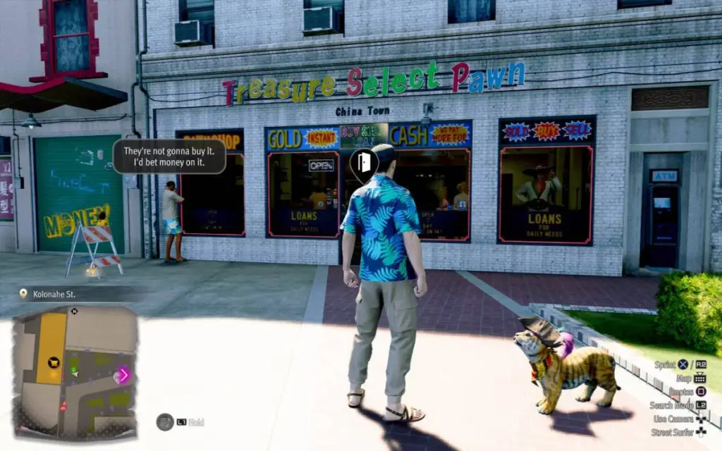 We’re almost finished! The last Treasure Select Pawn location can be found on Kolonahe St in Chinatown. It’s just to the east of the Nirvana Hotel. You’ll recognize the sign by now, so slide on in there and grab those last two SEGA Master System games. Since you’re the Captain, you don’t need to justify why you spent $3000 of the budget on a bunch of dusty old game cartridges. Those final two games are as follows: