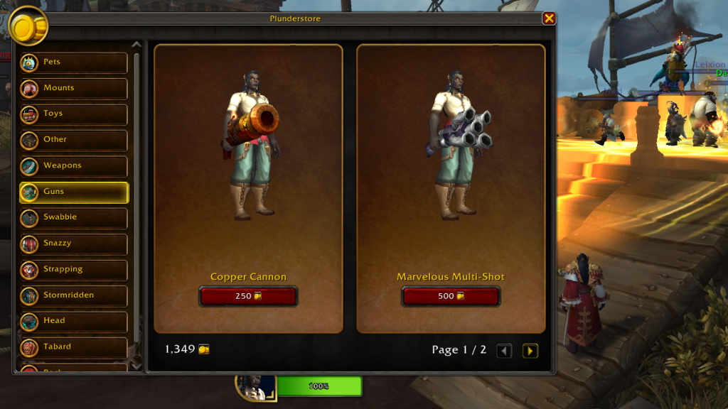 The new Plunderstore system allows players to purchase what they like with the plunder earned from playing Plunderstorm, rather than the previous Renown track system. If you want absolutely everything in the store, you’ll need to collect around 70,000 Plunder in total, although if you played last time and only need the new things you’ll need a little over half that much. Remember that some of the items bought in the store can also be worn during Plunderstorm matches by talking to the NPC Da’Kash Grimledger in the Brew Bay staging area!