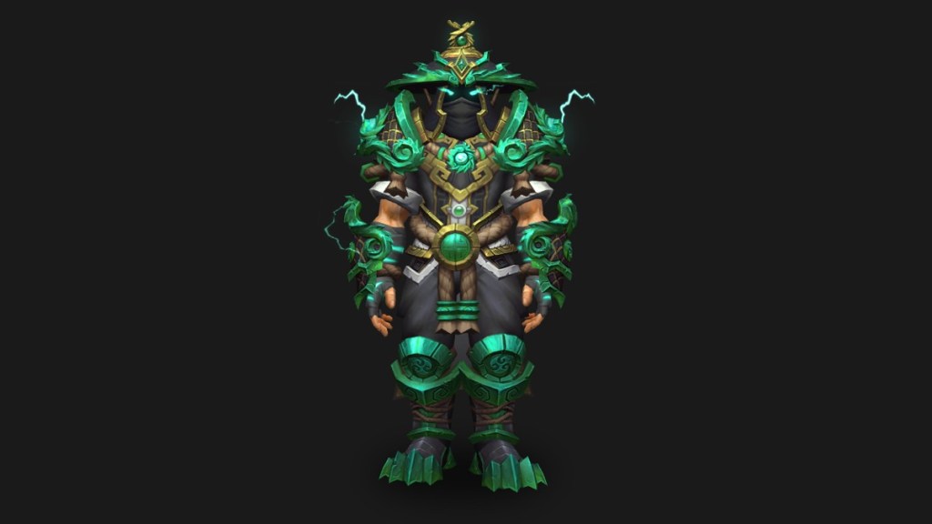 The 20th Anniversary Evoker set is the Earth-Warder’s Eternal Armor, inspired by Nefarian. Unfortunately, transmog restrictions for Dracthyr still apply when not in Visage Form.