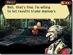 The Change system also ties in strategically to the second layer of Radiant Historia’s battles: the enemy grid. During battles, your enemies will be placed on a 3×3 grid. Enemies in the front row have increased offense, while enemies in the back row have increased defense. By using certain skills in battle, you can push or pull enemies farther or closer on the grid, depending on whether you want them to hit harder or take a beating better.
