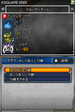 Dragon Quest Monsters Joker 2 also has Nintendo Wi-Fi support. You can challenge a friend, if you exchange friend codes, or find a random stranger to battle based on location and strength.