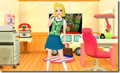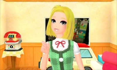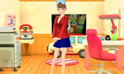The other three Animal Crossing: Happy Home Designer are pieces of clothing. A character will get Isabelle’s spring shirt, Lottie’s long sleeved shirt, and a Nook’s Home blazer. Below is my Girl’s Mode 3 avatar sporting ensembles inspired by the new clothing items. (I couldn’t get Lottie’s ribbon just right, but it’s close enough.)