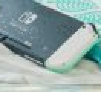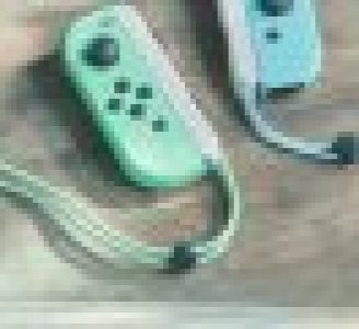 The Animal Crossing Switch is the standard version of the system, which means you could play it on the go or connect it to your TV. The system itself is black, with grassy designs on the back. Its left Joy-Con is a pastel green, while the right is a pastel blue. Both have matching wrist straps and a white strap they can attach to. The Dock is white with Tom Nook, Timmy, and Tommy standing on an island in the middle of the ocean.