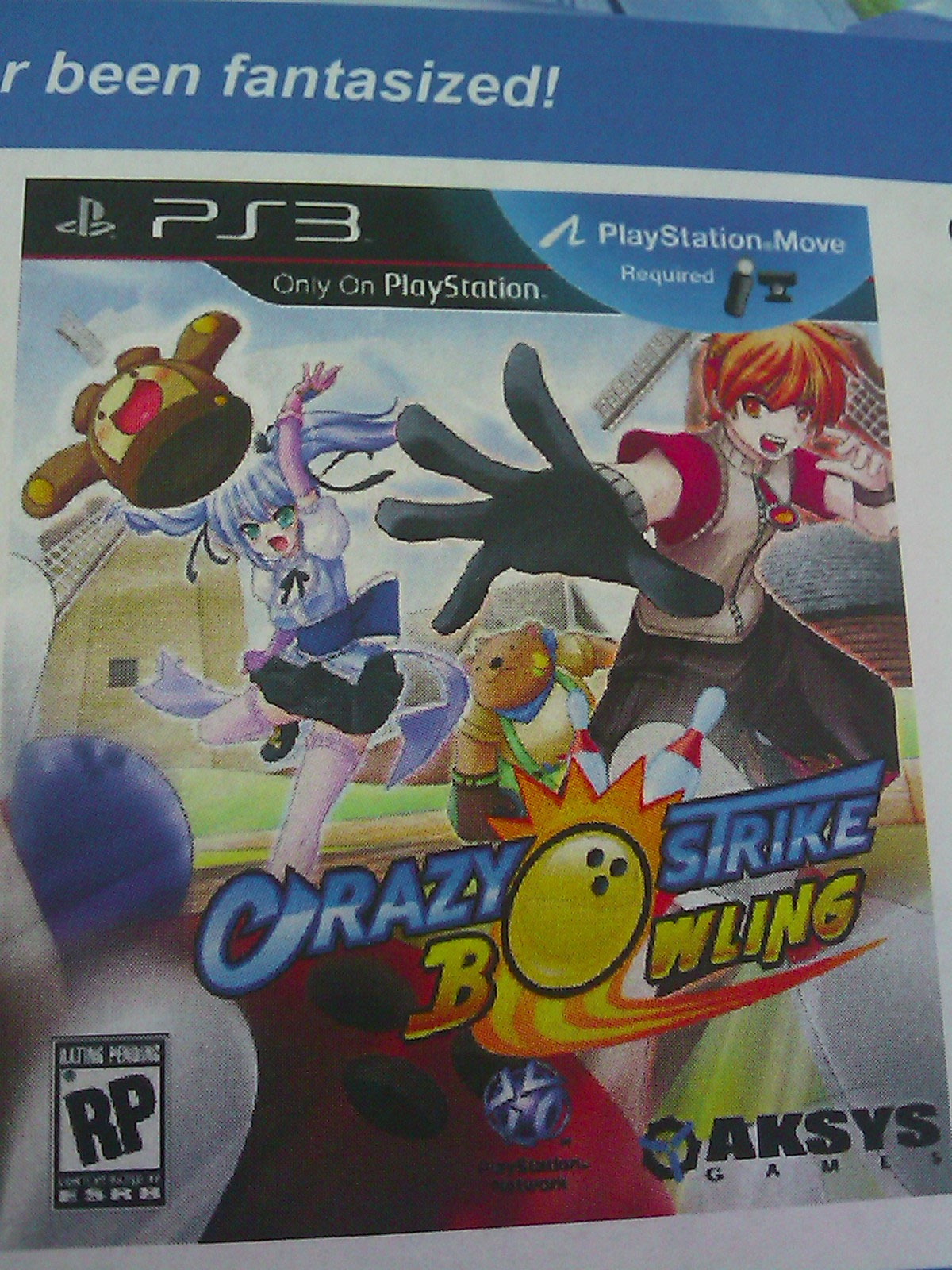 Aksys are releasing an anime-styled “sports” game for the PlayStation 3—Crazy Strike Bowling, compatible with the PlayStation Move controller, and scheduled for release sometime in Q4 of this year. Here’s the game’s cover: