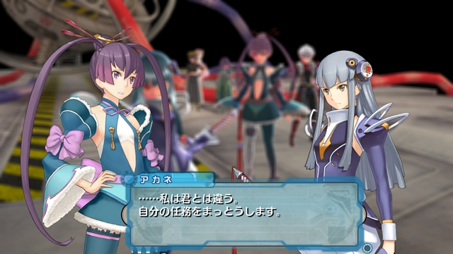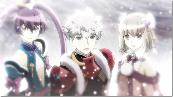 Let’s switch gears and look at another Namco Bandai RPG, Ar Tonelico III. This group of screenshots shows characters tied to the Archia Institute, led by Raffaele. Thanks to his leadership the humans in Archia can live in peace apart from the Reyvateils. The reyvateils attacked Gengai (the hulking dude with an eyepatch) who now commands the Great Fang Alliance.