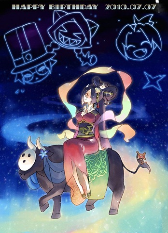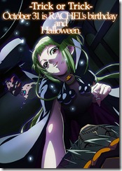 Rachel’s birthday happens to fall on October 31st, which is Halloween. Her cards always tend to look interesting. What you see above is her card for 2010. Here are the cards Arc Sys drew in 2009 for comparison: