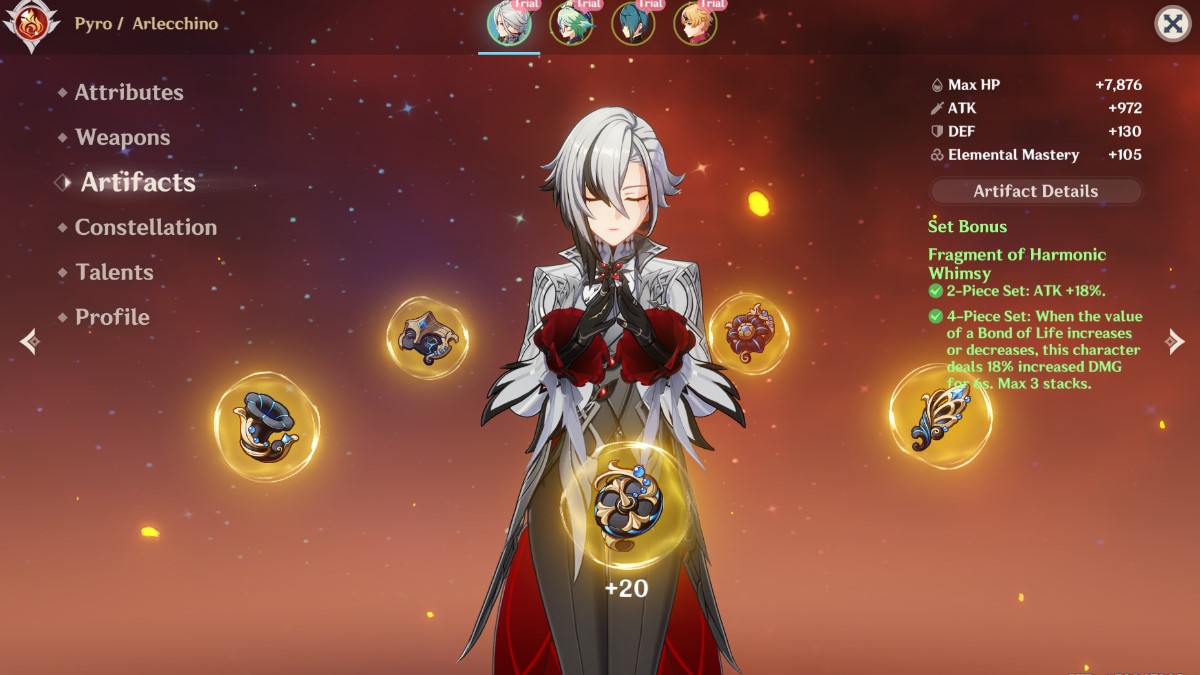 Here are the best Artifacts for Arlecchino: