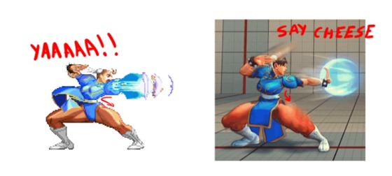 “Because of this, SFIV Chun-li looks like she’s posing for a photo shoot, whereas SFIII Chun-li looks full of adrenaline and intensity… almost as though she were in a fight!”