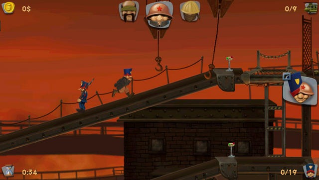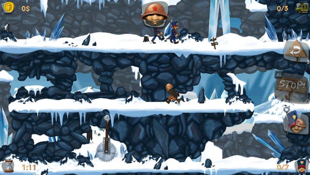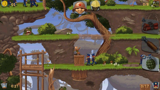 The game is an action puzzler where players use five kinds to move through trap filled stages. Similar to The Lost Vikings each unit has a different set of skills and you can switch characters on the fly. Soldiers attack enemies with guns and grenades. Commandos parachute from high ground and engineers build bridges.